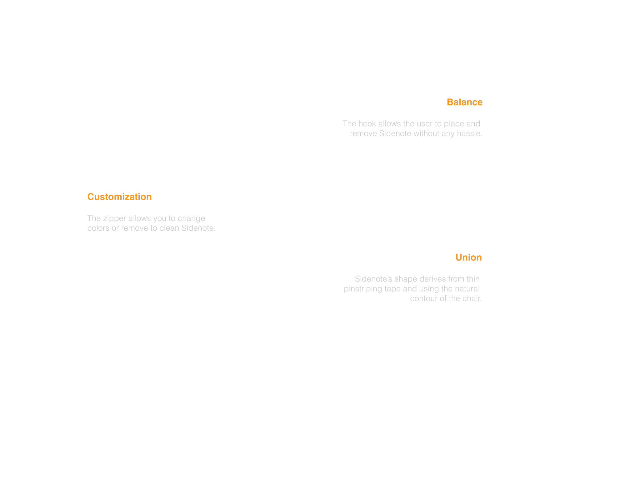 The side pockets free up desk space and allow you to focus on what's important. Side Note uses the structure of the chair so that it's never obtrusive.