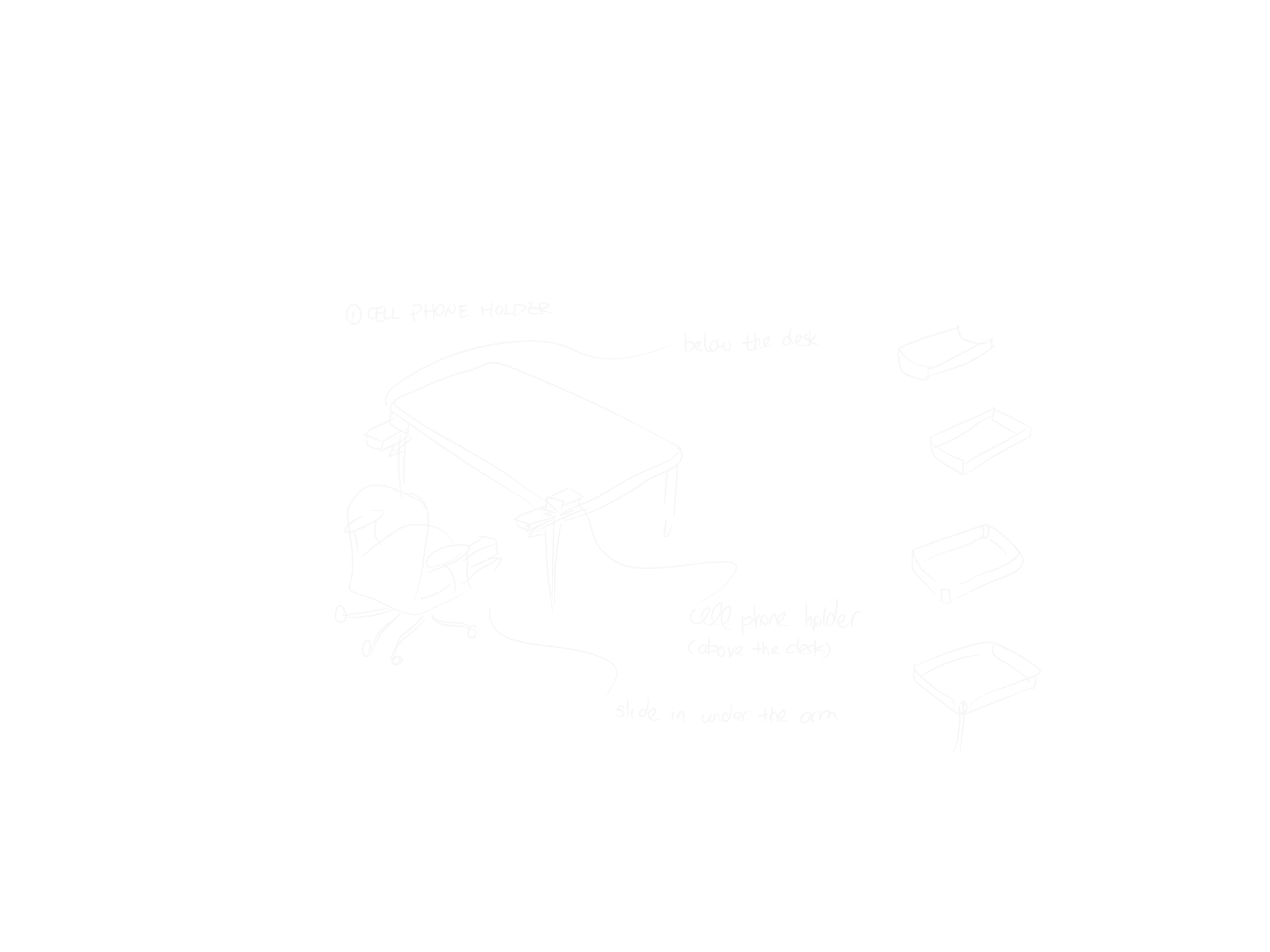The concept of a cell phone holder on the Poppin desk was the starting concept for Linghua's final product, The Phone Docking Station.